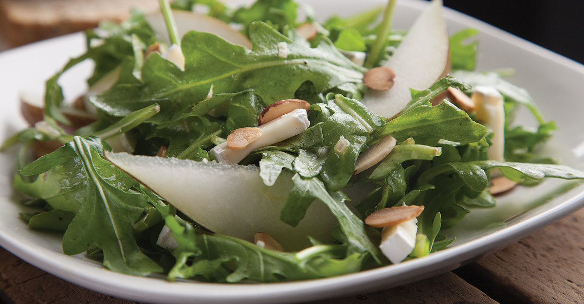 Arugula, Pear, and Camembert Salad with Farmhouse-Ale Vinaigrette