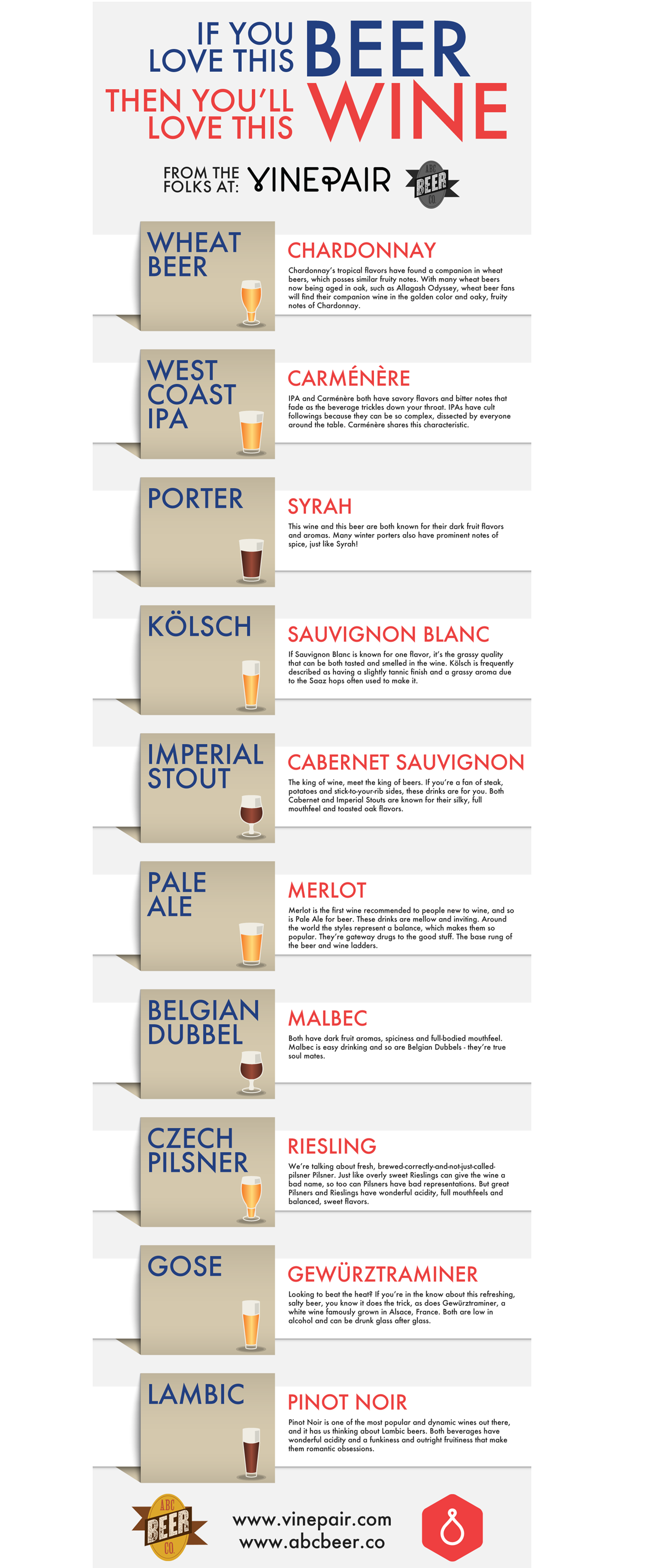 If you have friends who are in that transition process, we found on VinePair an infographic that will help you introduce them to craft beer. Simply find their favorite wine on the right, and treat them to the recommended craft beer on the left.